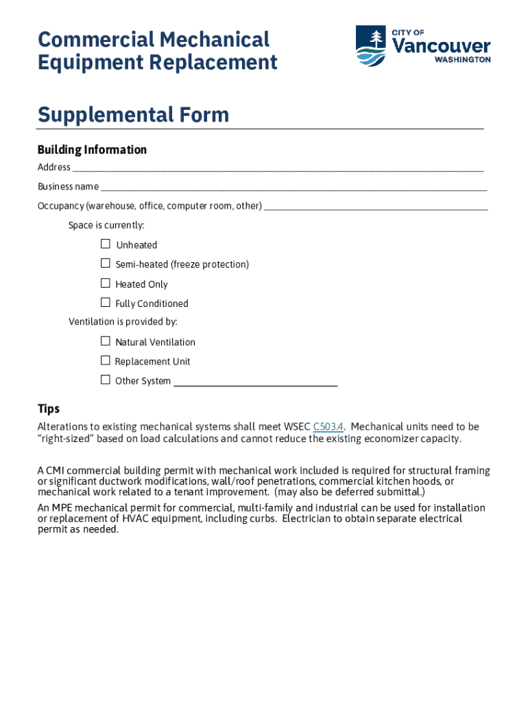 Get the free Commercial Mechanical Equipment Replacement Supplemental Form