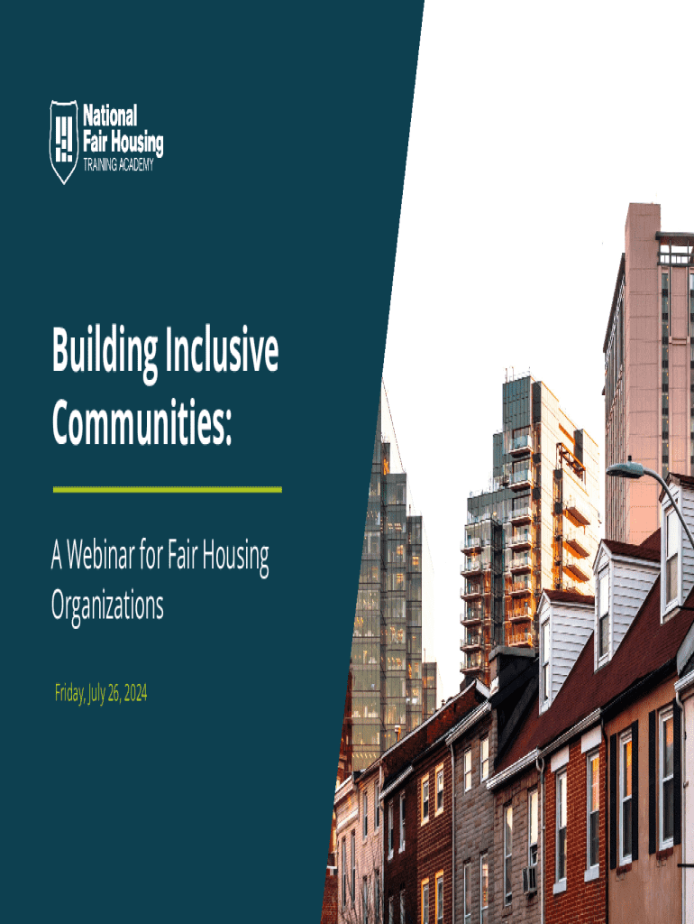 Building Inclusive Communities: A Webinar for Fair Housing Organizations Friday, July 26, 2024Disclaimer This material is based upon work supported by funding under an award with the U.S. Department