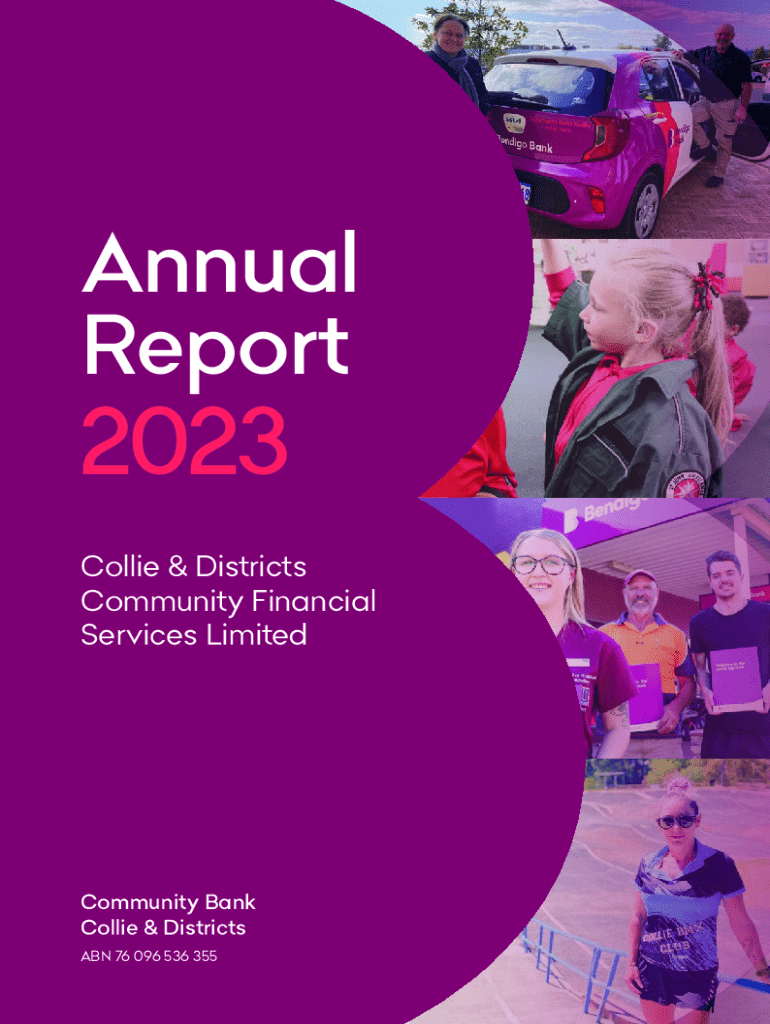 This annual report outlines the financial performance and community contributions of Collie & Districts Community Financial Services Limited for the year ending June 30, 2023. It includes the Chairman\'s and Manager\'s reports, financial statements, and a detailed account of community funding initiatives supported by the organization.