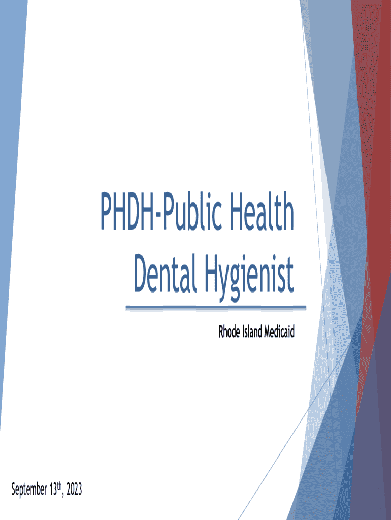 PHDHPublic Health Dental Hygienist Rhode Island MedicaidSeptember 13th, 2023Agenda Section One Introduction to Medicaid Provider Enrollment Steps You Take to Get Set Up Enrolling for a Trading Partner