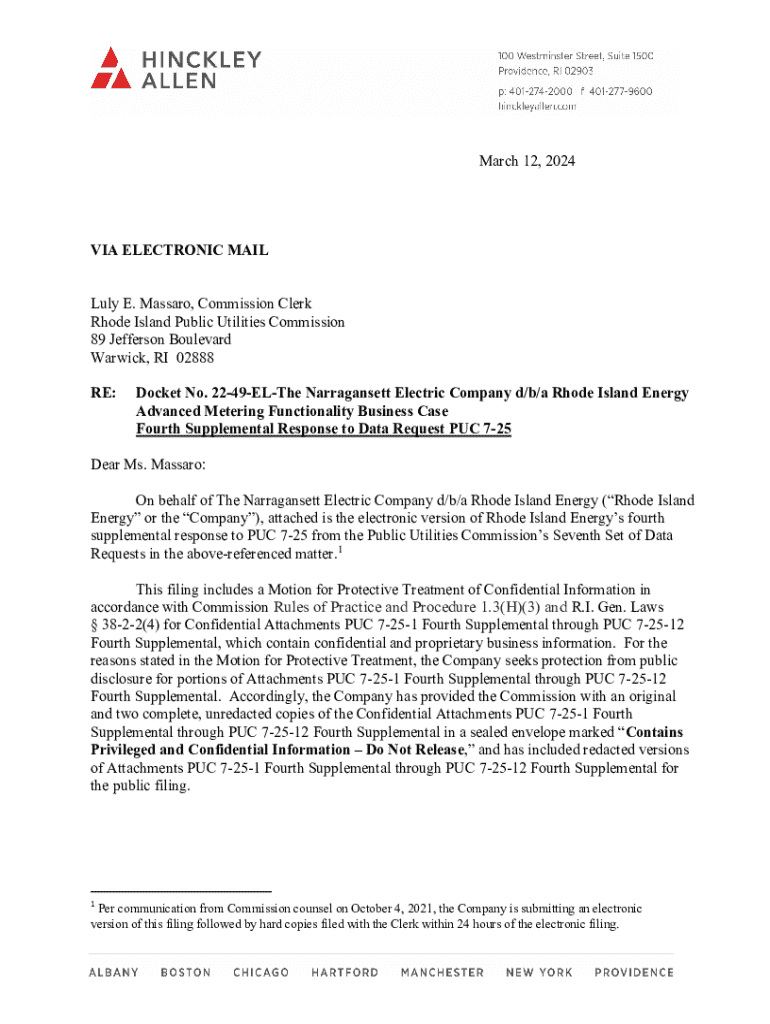 March 12, 2024VIA ELECTRONIC MAIL Luly E. Massaro, Commission Clerk Rhode Island Public Utilities Commission 89 Jefferson Boulevard Warwick, RI 02888 RE:Docket No. 2249ELThe Narragansett Electric