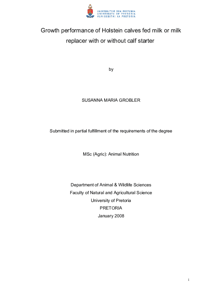Get the free Growth Performance of Holstein Calves Fed Milk or Milk Replacer