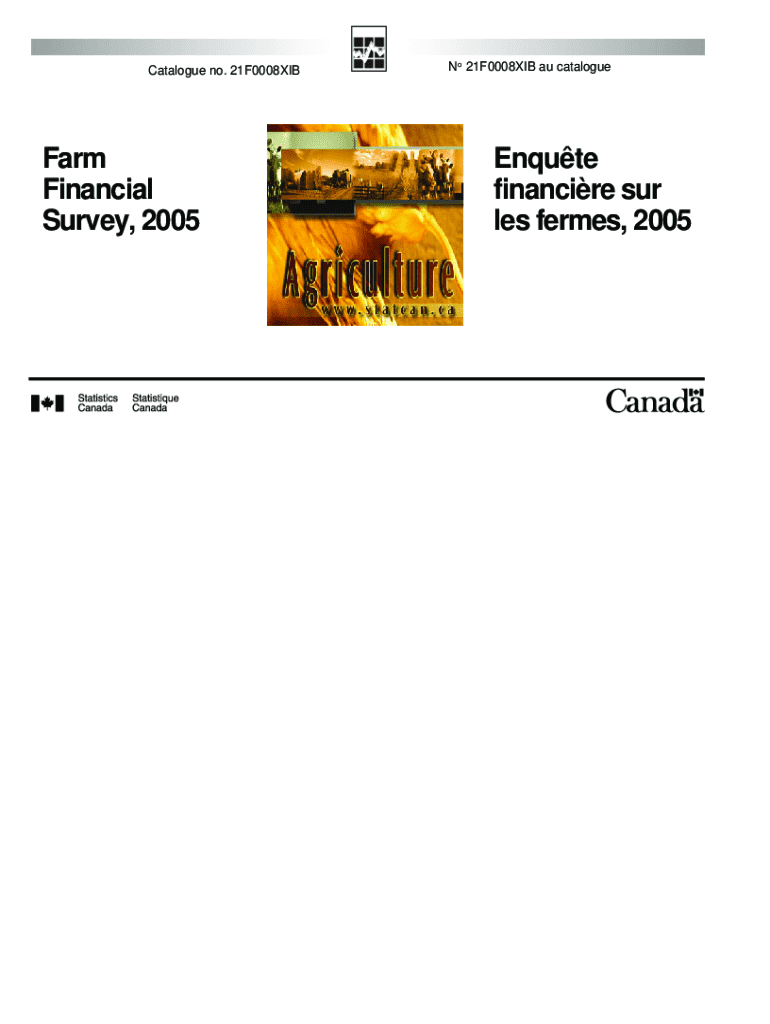 Catalogue no. 21F0008XIBFarm Financial Survey, 2005No 21F0008XIB au catalogueEnqute financire sur les fermes, 2005How to obtain more informationComment obtenir dautres renseignementsSpecific inquiries