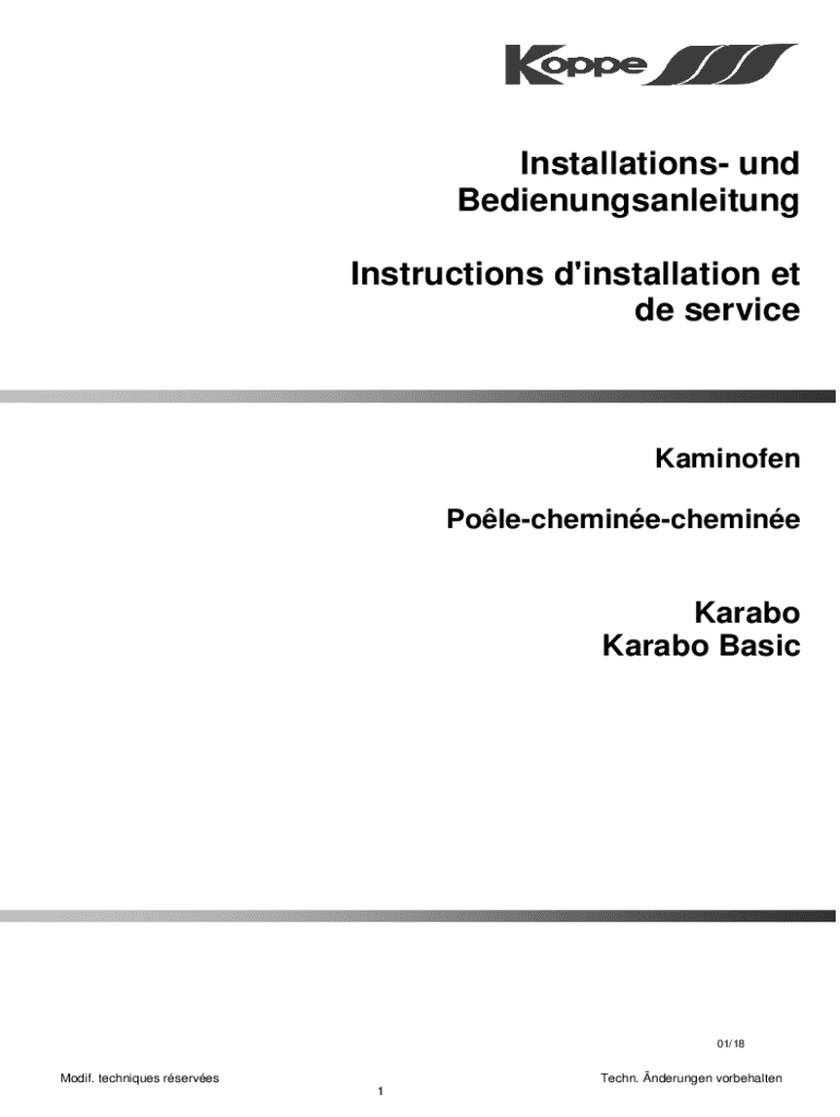 Installations und Bedienungsanleitung Instructions d\'installation et de serviceKaminofen PolecheminechemineKarabo Karabo Basic01/18Modif. techniques rserves1Techn. nderungen vorbehaltenBEDIENUNGSANLEITUNGSehr