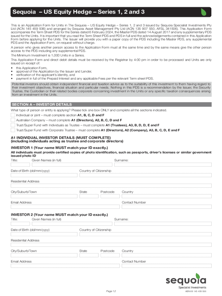 To fill out Sequoia - US Equity, you need to gather information about your equity holdings, complete the required sections of the form, and provide accurate financial and identifying information as requested.