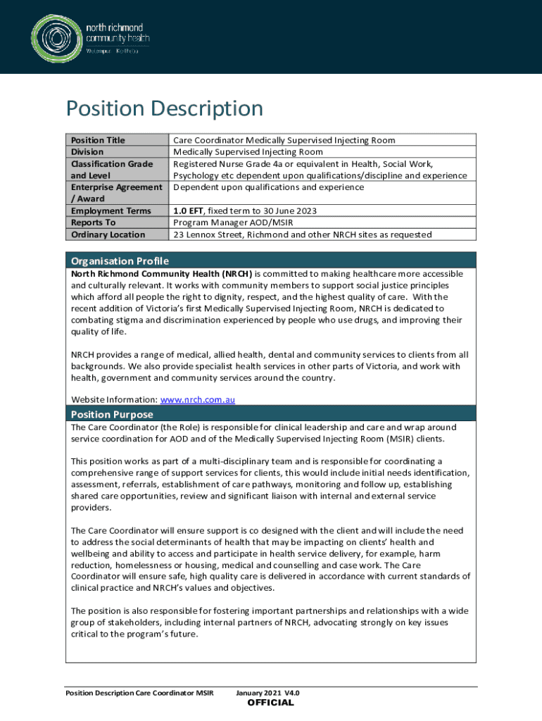 Fill out your position description harm reduction online with pdfFiller!