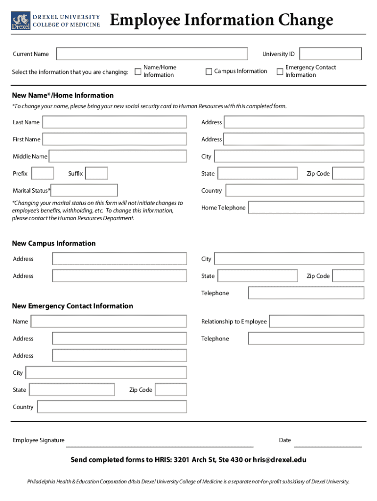 Get the free Employee Information Change