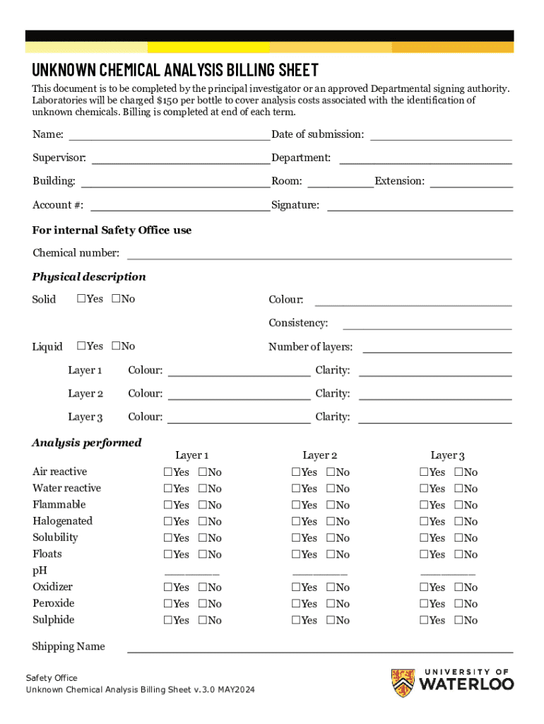 Fill out your unknown chemical analysis billing online with pdfFiller!