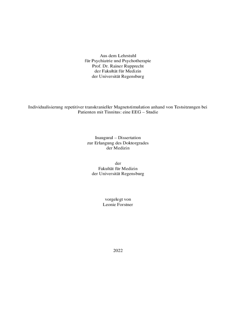 Aus dem Lehrstuhl fr Psychiatrie und Psychotherapie Prof. Dr. Rainer Rupprecht der Fakultt fr Medizin der Universitt RegensburgIndividualisierung repetitiver transkranieller Magnetstimulation anhand