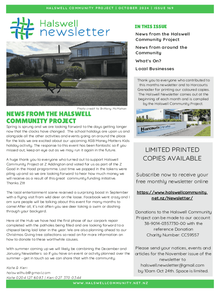 Fill out your halswell community project newsletter online with pdfFiller!
