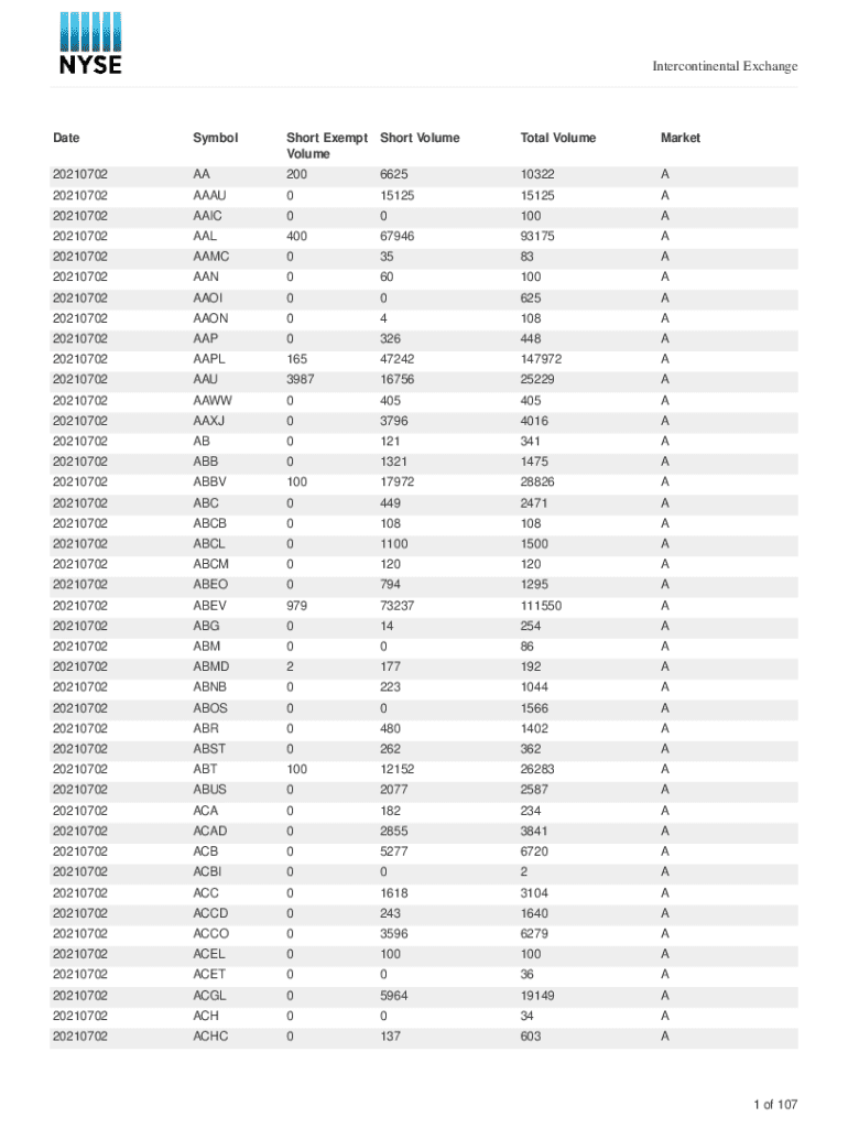 Intercontinental ExchangeDateSymbolShort Exempt Short Volume VolumeTotal VolumeMarket20210702AA200662510322A20210702AAAU01512515125A20210702AAIC00100A20210702AAL4006794693175A20210702AAMC03583A20210702AAN060100A20210702AAOI00625A20210702AAON04108A20210702AAP0326448A20210702AAPL16547242147972A20210702AAU39871675625229A20210702AAWW0405405A20210702AAXJ037964016A20210702AB0121