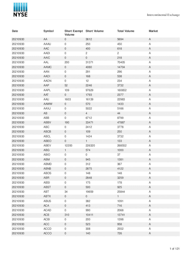 Intercontinental ExchangeDateSymbolShort Exempt Short Volume VolumeTotal VolumeMarket20210930AA036125694A20210930AAAU0250450A20210930AAC0400618A20210930AADI022A20210930AAIC00218A20210930AAL2003137170405A20210930AAMC0408014704A20210930AAN0291296A20210930AAOI0168538A20210930AAON012234A20210930AAP5222463732A20210930AAPL10997629160652A20210930AAT017932377A20210930AAU160316139
