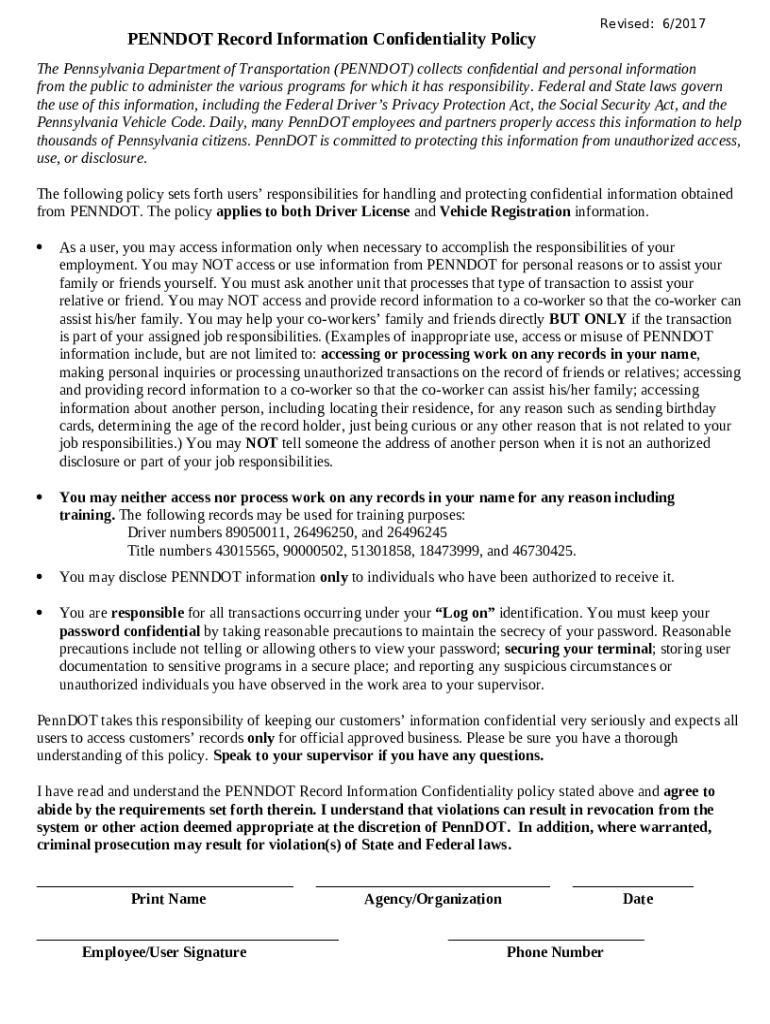 Frequently asked questions about the form Penndot Record Ination Confidentiality Policy