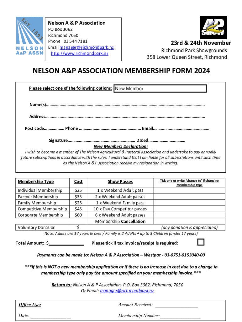 Get the free NELSON A&P ASSOCIATION MEMBERSHIP FORM 2024