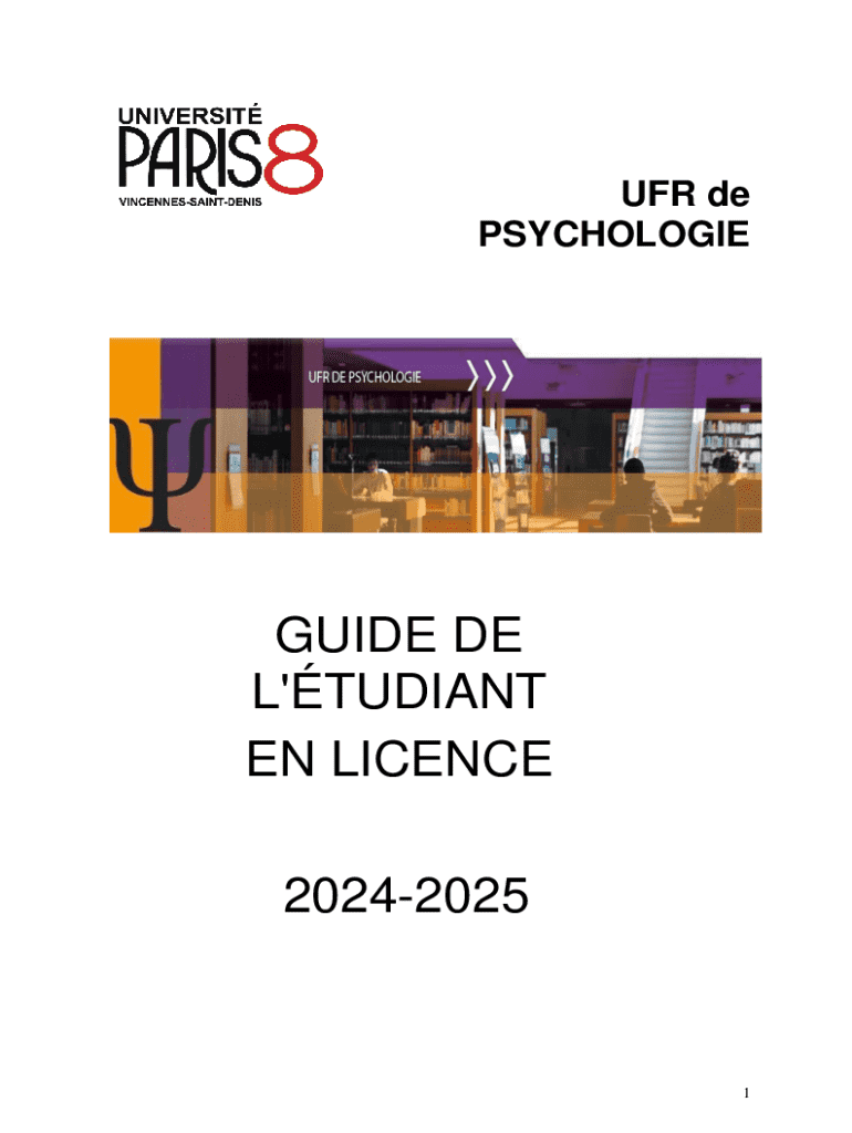 UFR de PSYCHOLOGIEGUIDE DE L\'TUDIANT EN LICENCE 202420251Tout ce que vous devez savoir ds votre inscription luniversit et tout au long de votre cursus de licence.2INFORMATIONS GNRALES5 Le calendrier