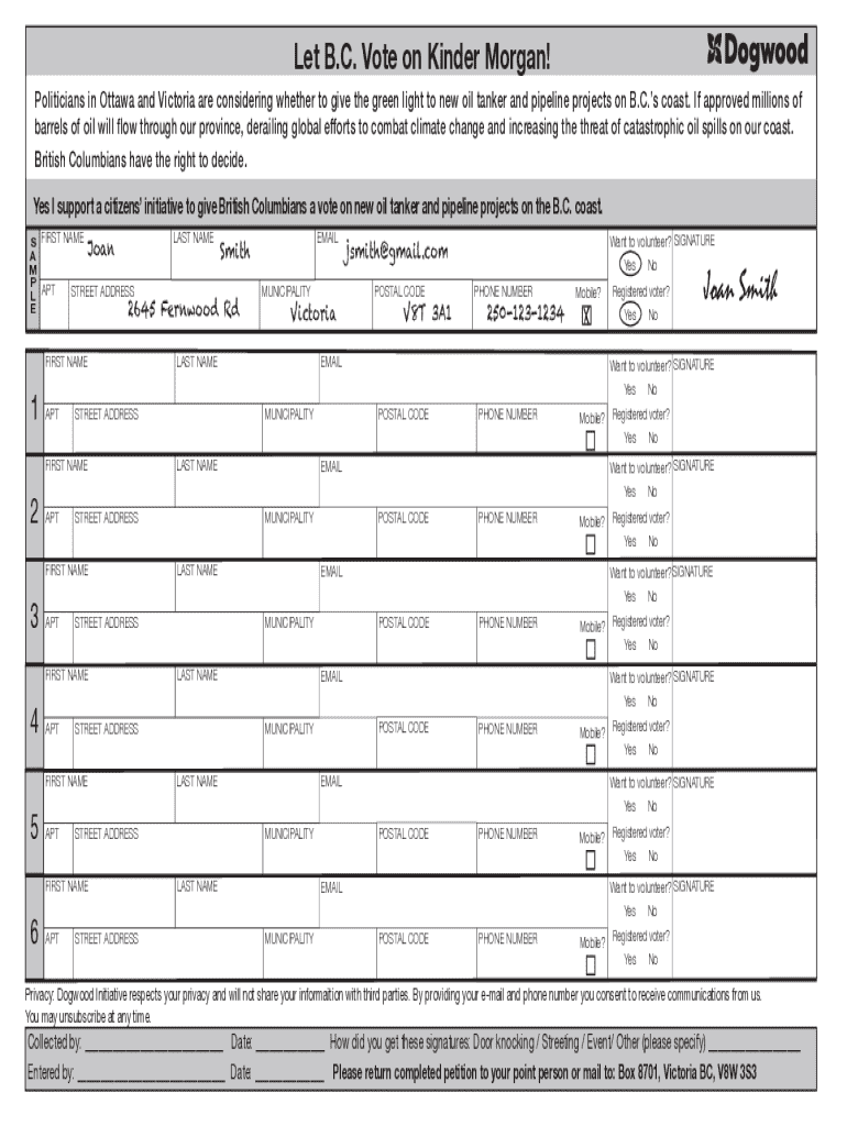 Let B.C. Vote on Kinder Morgan!Politicians in Ottawa and Victoria are considering whether to give the green light to new oil tanker and pipeline projects on B.C.s coast. If approved millions of barrels