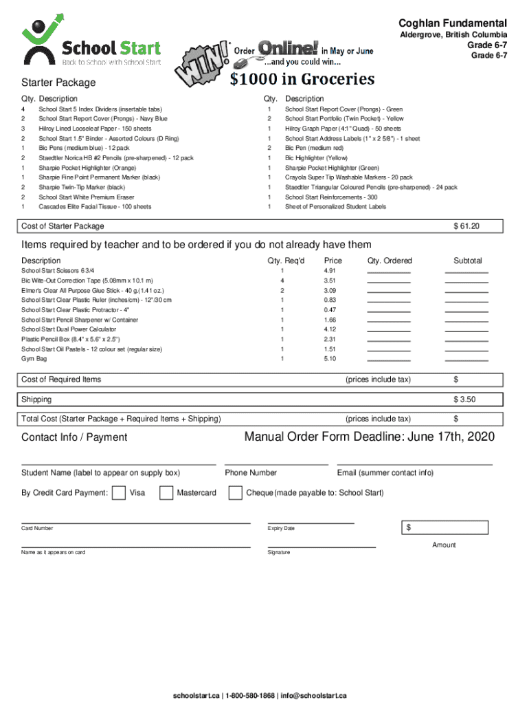 Coghlan Fundamental Aldergrove, British ColumbiaGrade 67 Grade 67Starter Package Qty. DescriptionQty. Description4School Start 5 Index Dividers (insertable tabs)1School Start Report Cover (Prongs)