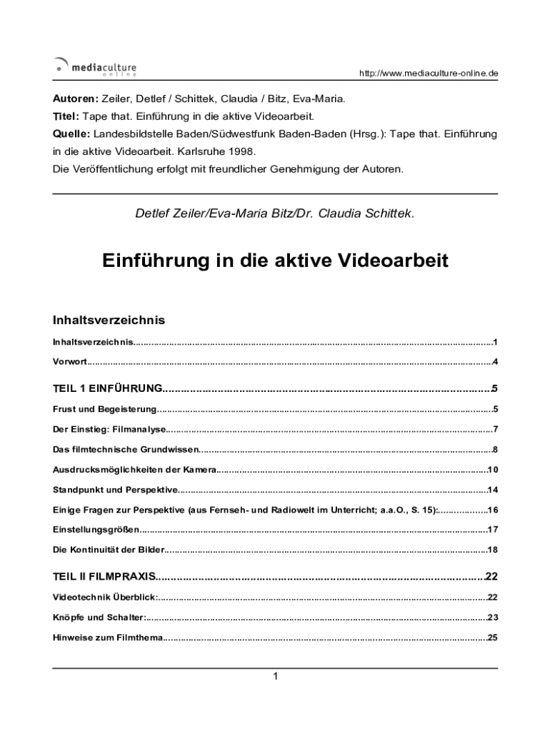 http://www.mediacultureonline.deAutoren: Zeiler, Detlef / Schittek, Claudia / Bitz, EvaMaria. Titel: Tape that. Einfhrung in die aktive Videoarbeit. Quelle: Landesbildstelle Baden/Sdwestfunk BadenBaden