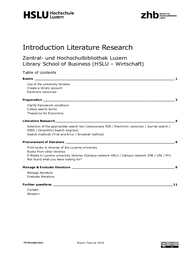 Introduction Literature Research Zentral und Hochschulbibliothek Luzern Library School of Business (HSLU Wirtschaft) Table of contents Basics ___ 1 Use of the university libraries Create a library