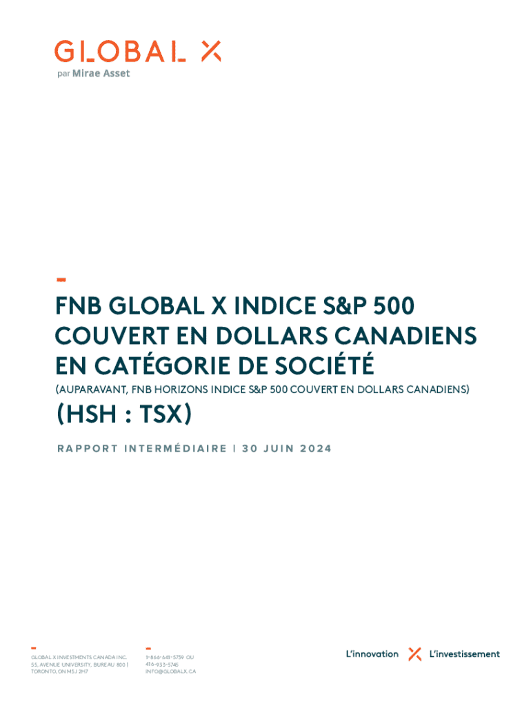 parFNB GLOBAL X INDICE S&P 500 COUVERT EN DOLLARS CANADIENS EN CATGORIE DE SOCIT (AUPARAVANT, FNB HORIZONS INDICE S&P 500 COUVERT EN DOLLARS CANADIENS)(HSH : TSX)RAPPORT INTERMDIAIRE | 30 JUIN 2024GLOBAL