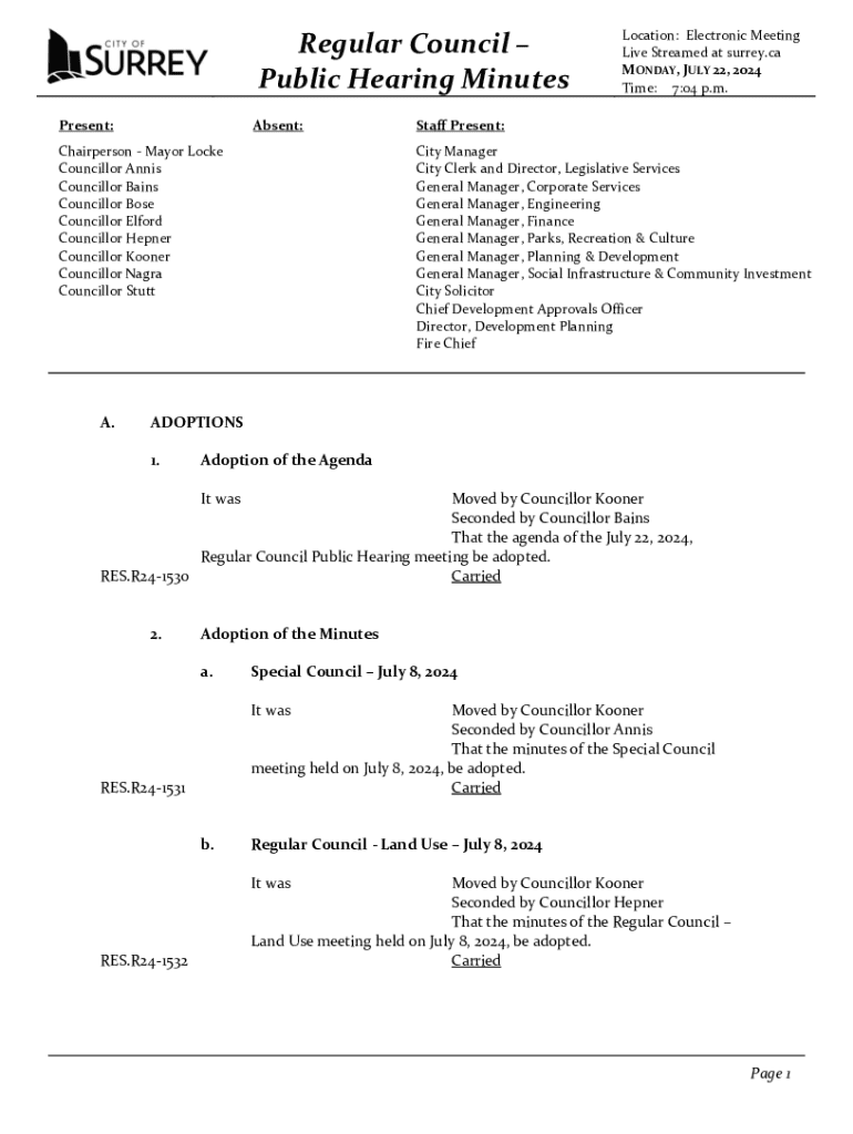 Get the free Regular Council Public Hearing Minutes
