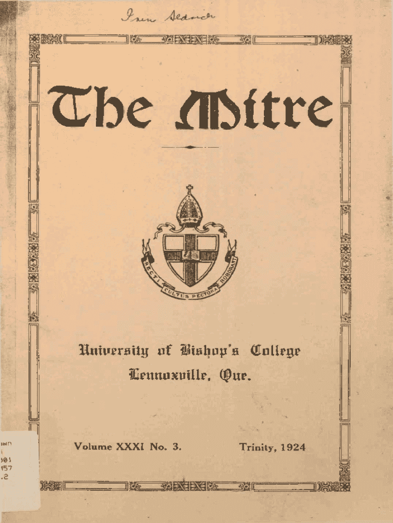 This document is the third issue of Volume XXXI of \'The Mitre\', the student publication of Bishop\'s University in Lennoxville, Quebec, published in Trinity, 1924. It includes university news, faculty profiles, articles on various subjects including a travel piece about Andorra, and assorted reflections on university life.