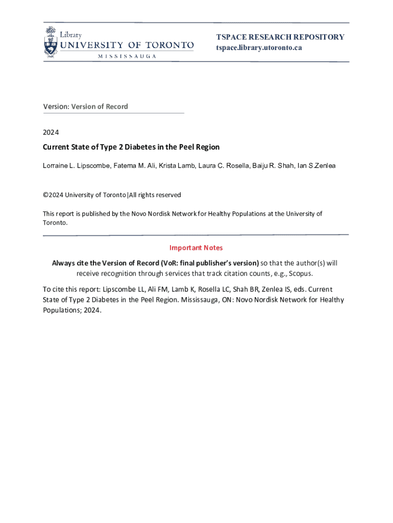 TSPACE RESEARCH REPOSITORY tspace.library.utoronto.caVersion: Version of Record 2024Current State of Type 2 Diabetes in the Peel Region Lorraine L. Lipscombe, Fatema M. Ali, Krista Lamb, Laura C.