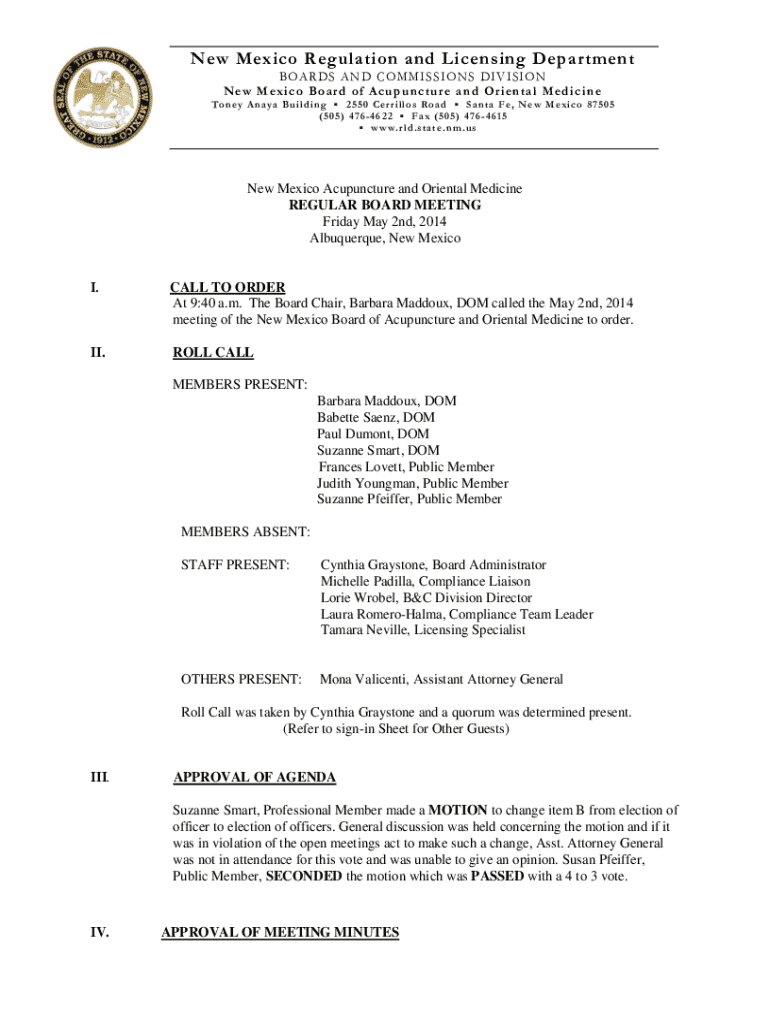 Get the free New M ex i c o Bo ar d of Ac upu nc tur e an d Or ien tal Med ic i ne