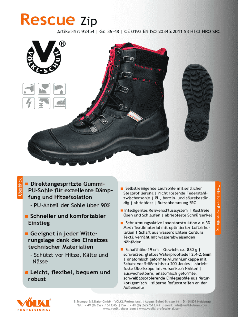 Rescue Zip Direktangespritzte GummiPUSohle fr exzellente Dmpfung und Hitzeisolation PUAnteil der Sohle ber 90% Schneller und komfortabler Einstieg Geeignet in jeder Witterungslage dank des Einsatzes