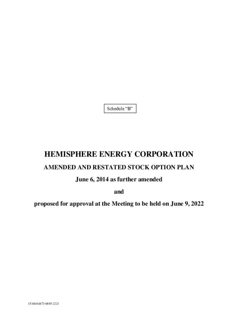 Schedule BHEMISPHERE ENERGY CORPORATION AMENDED AND RESTATED STOCK OPTION PLAN June 6, 2014 as further amended and proposed for approval at the Meeting to be held on June 9, 2022153484487306952221TABLE