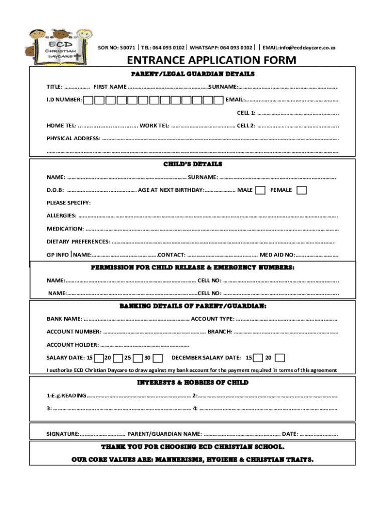 Get the free Entrance Application Form