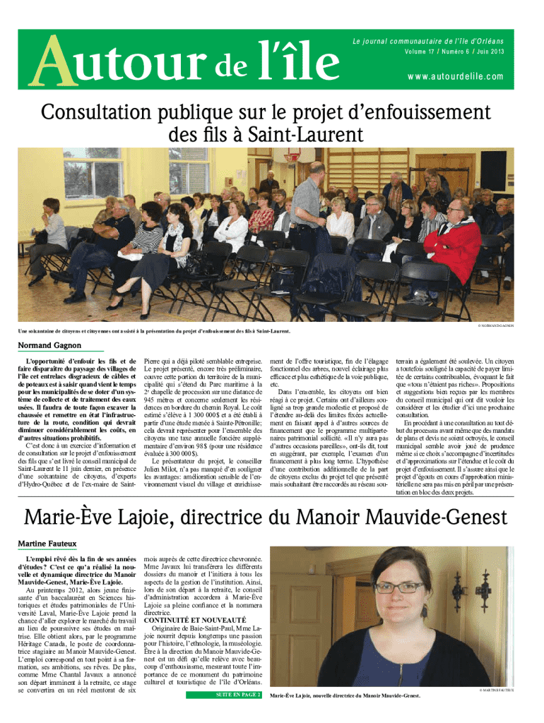Le j o u r na l c o m m u nau t a i r e de l l e d O r l a n s Vo lu me 17 / Nu m r o 6 / J u in 2 013w w w.au t o ur delil e.c o mConsultation publique sur le projet denfouissement des fils SaintLaurent