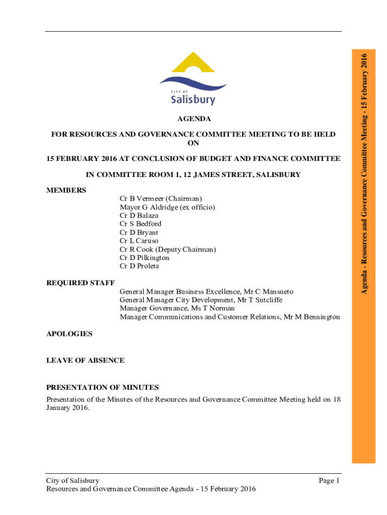 Get the free Resources and Governance Committee Agenda