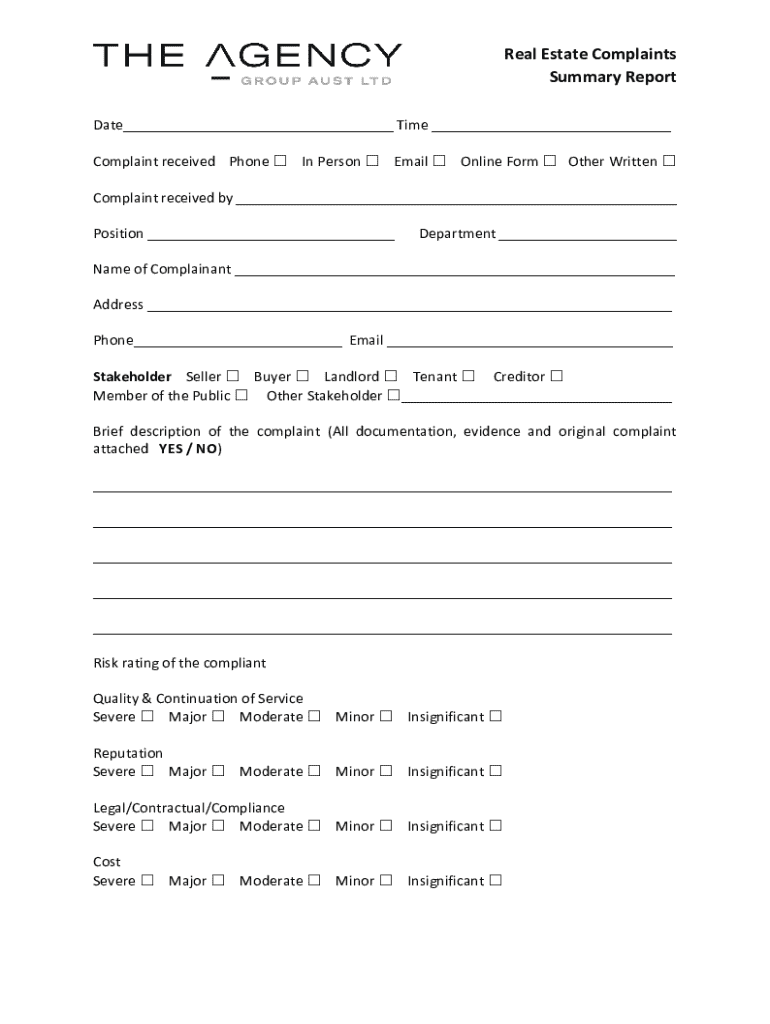 Edit your real estate complaints summary form online