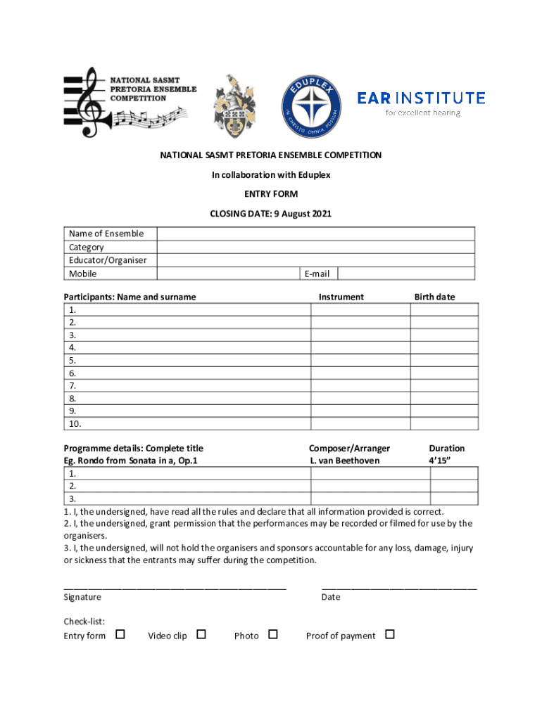 Get the free National Sasmt Pretoria Ensemble Competition Entry Form