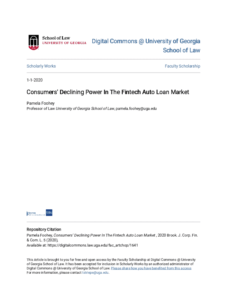 Digital Commons @ University of Georgia School of Law Scholarly WorksFaculty Scholarship112020Consumers Declining Power In The Fintech Auto Loan Market Pamela Foohey Professor of Law University of