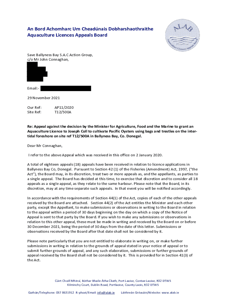 Get the free Aquaculture Licences Appeals Board Communication