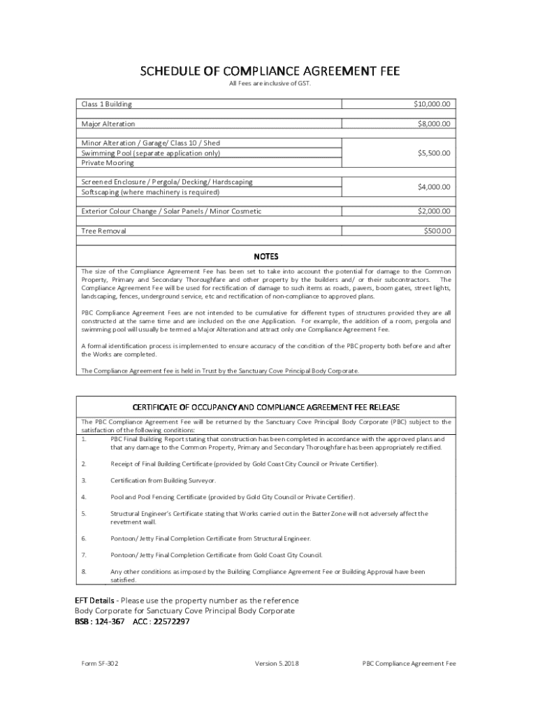 Get the free Form SF-302 Schedule of Compliance Agreement Fee 20180601.doc