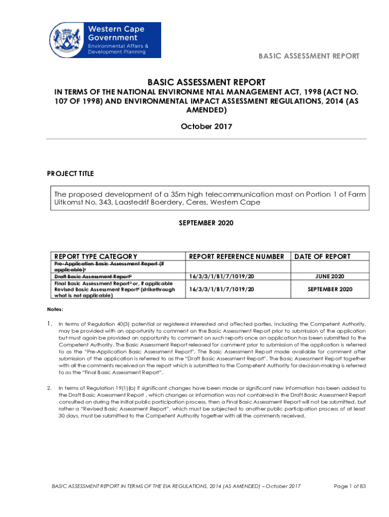 Basic Assessment Report is not the form you're looking for?Search for another form here.