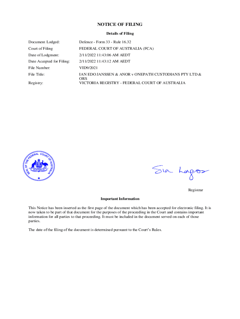 Get the free Defence - Form 33 - Rule 16.32