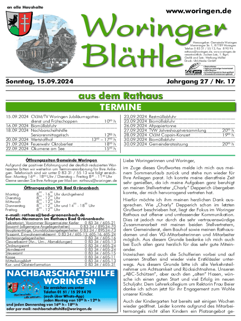 an alle Haushaltewww.woringen.deHerausgeber: Gemeinde Woringen Memminger Str. 1, 87789 Woringen Telefon 0 83 31 / 55 13, Fax 8 90 94 rathaus@woringen.de, www.woringen.de verantwortlich: Jochen Lutz,