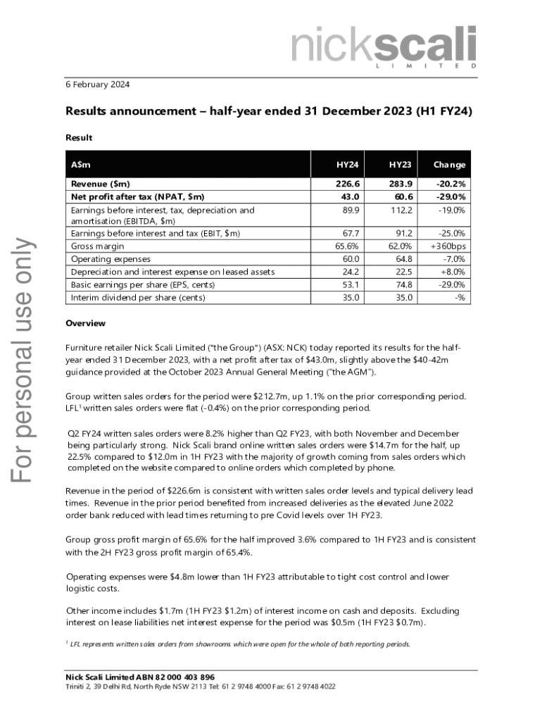 Fill out your nick scali half-year results online with pdfFiller!