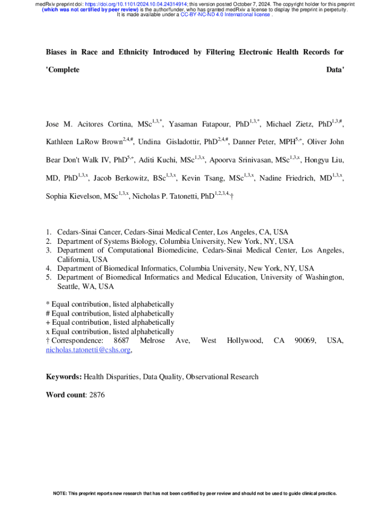Get the free Biases in Race and Ethnicity Introduced by Filtering ...
