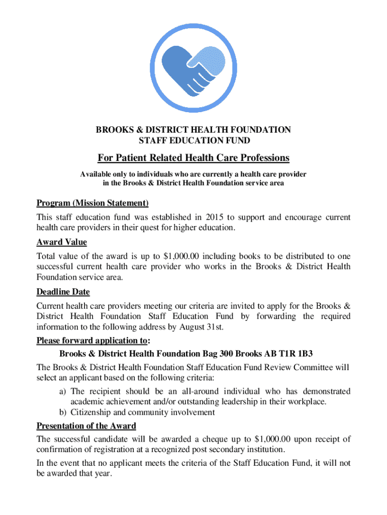 Get the free Brooks & District Health Foundation Staff Education Fund Application