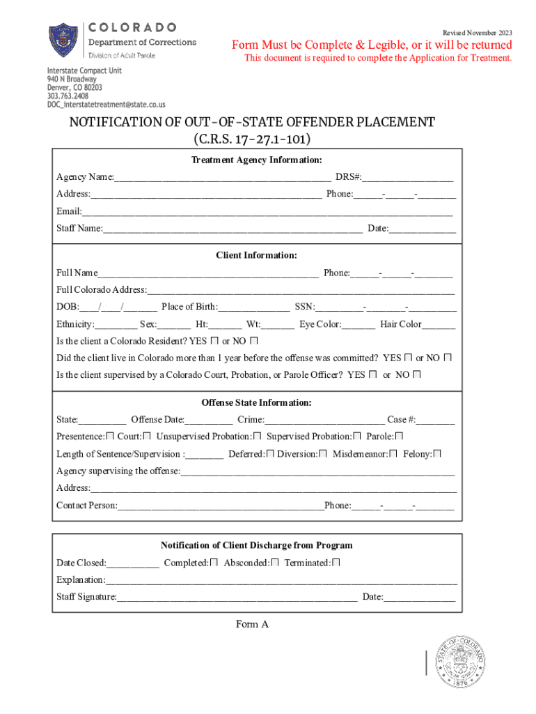Get the free Notification of Out-of-state Offender Placement