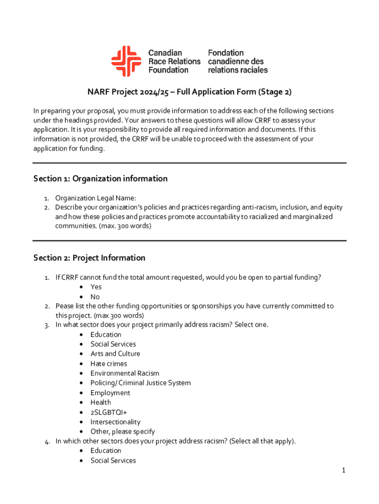 Fill out your narf project 202425 full online with pdfFiller!