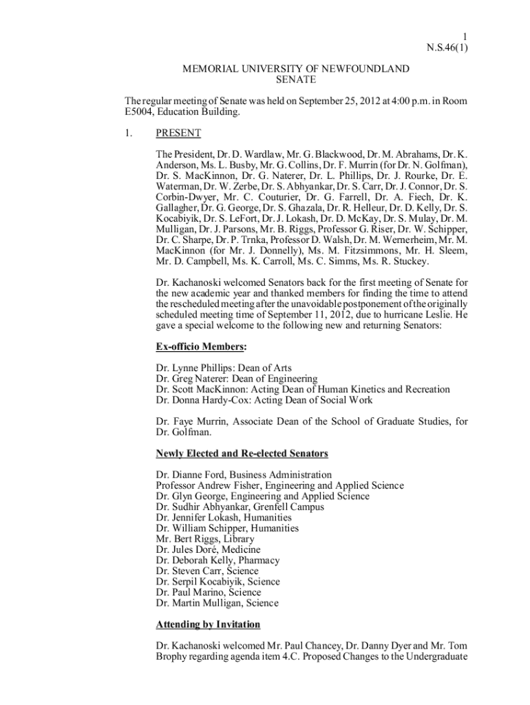 Get the free N.S.46(1) 1 MEMORIAL UNIVERSITY OF ...