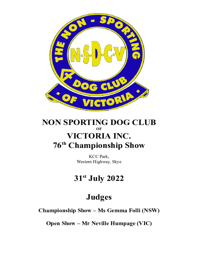 Get the free Non Sporting Dog Club of Victoria Inc. 76th Championship Show