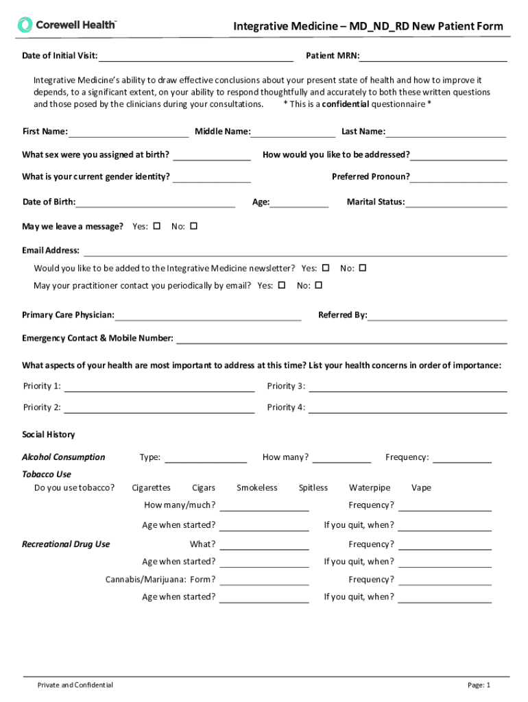 Get the free Integrative Medicine MDNDRD New Patient Form