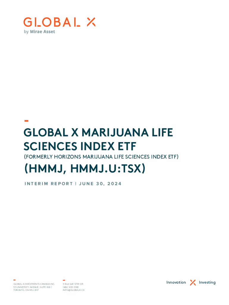 GLOBAL X MARIJUANA LIFE SCIENCES INDEX ETF (FORMERLY HORIZONS MARIJUANA LIFE SCIENCES INDEX ETF)(HMMJ, HMMJ.U:TSX) INTERIM REPORT | JUNE 30, 2024GLOBAL X INVESTMENTS CANADA INC. 55 UNIVERSITY AVENUE,